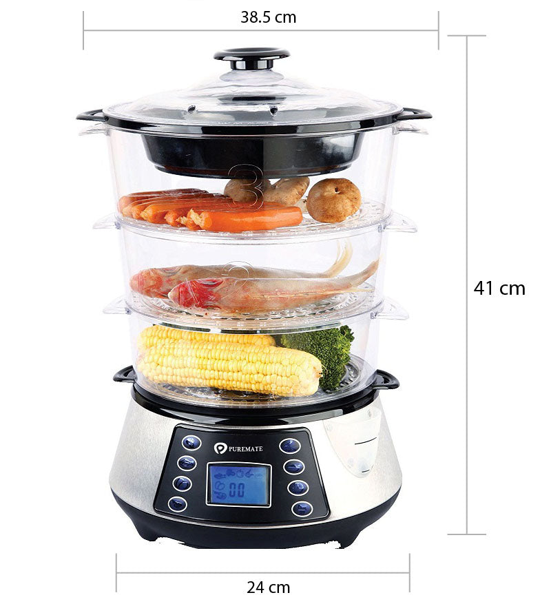 PureMate Digital 3 Tier Electric Food Steamer with Rice Bowl – Enjoy Healthy and Convenient...