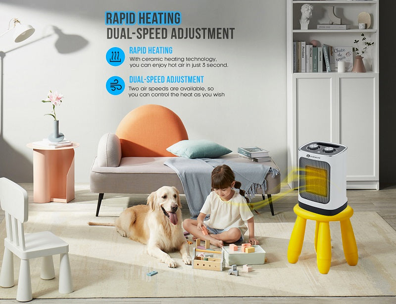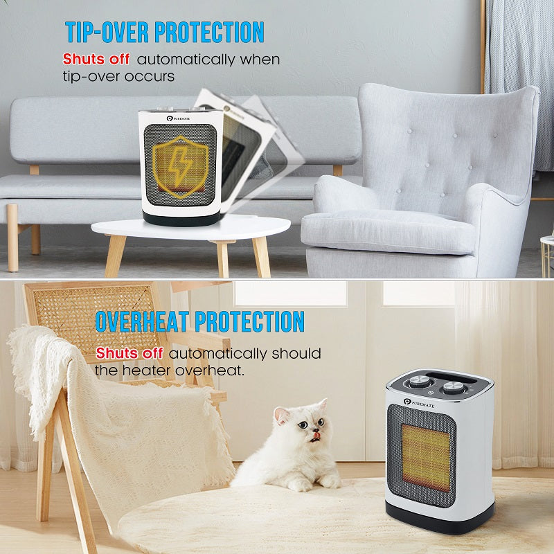 FAST WARM UP & COMFORTABLE HEATING – Are you feeling freezing in room or office through the winter? PureMate fan heater is totally design against the chill and stay warm with you! This mini heater utilises self-regulating ceramic-plate(PTC) as heating element, HEAT UP in seconds and MORE UNIFORM HEATING than traditional heating technologies.TAKE THE CHILL OUT OF YOUR ROOM!