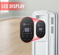 The digital thermostat and 24-hour programmable timer give you complete control over your comfort. Select from two adjustable power settings (1000W/2300W) or use the ECO mode to automatically maintain an optimal temperature while conserving energy. The remote control and easy-to-read LED display make operation simple and convenient from anywhere in the room.