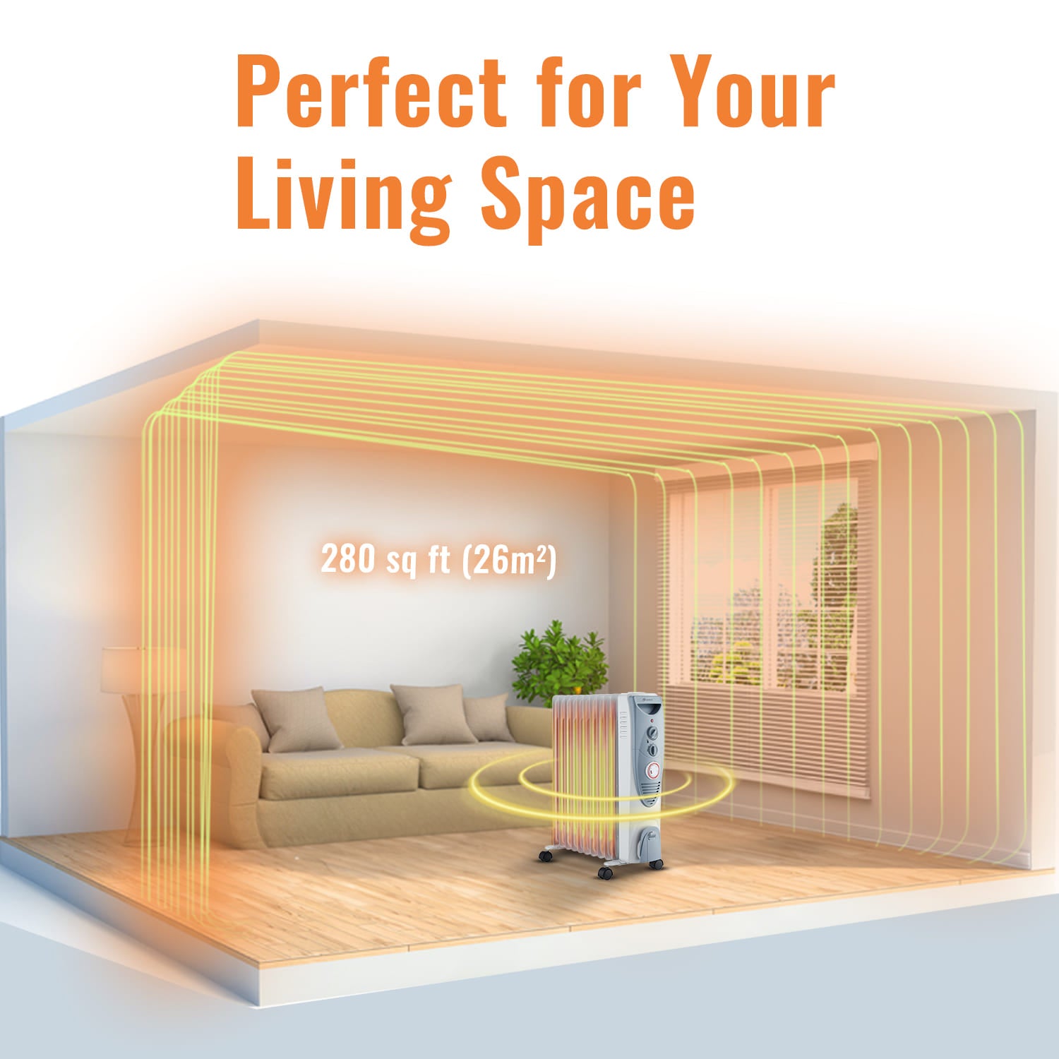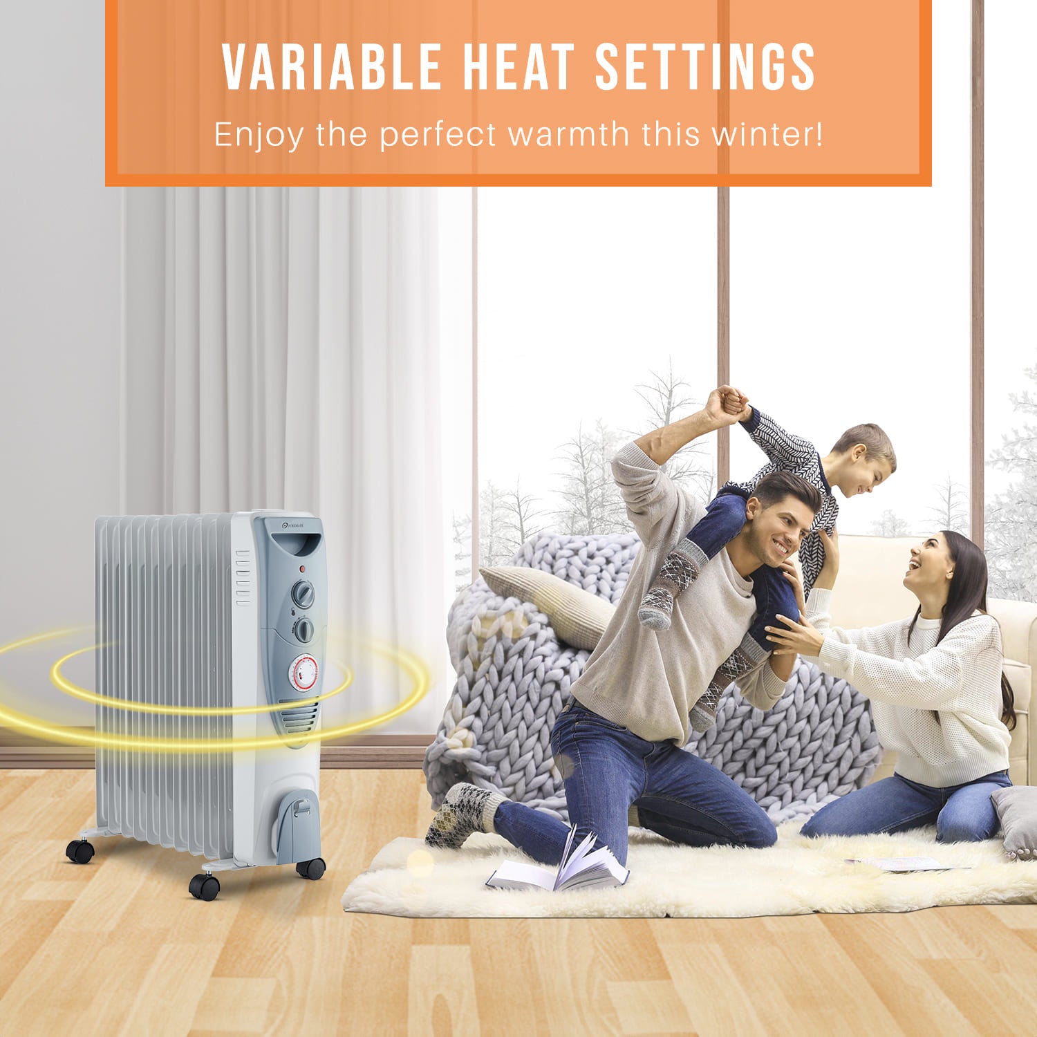 PureMate 2500W Oil Filled Radiator With 11 Heating Fins - Portable Electric Heater