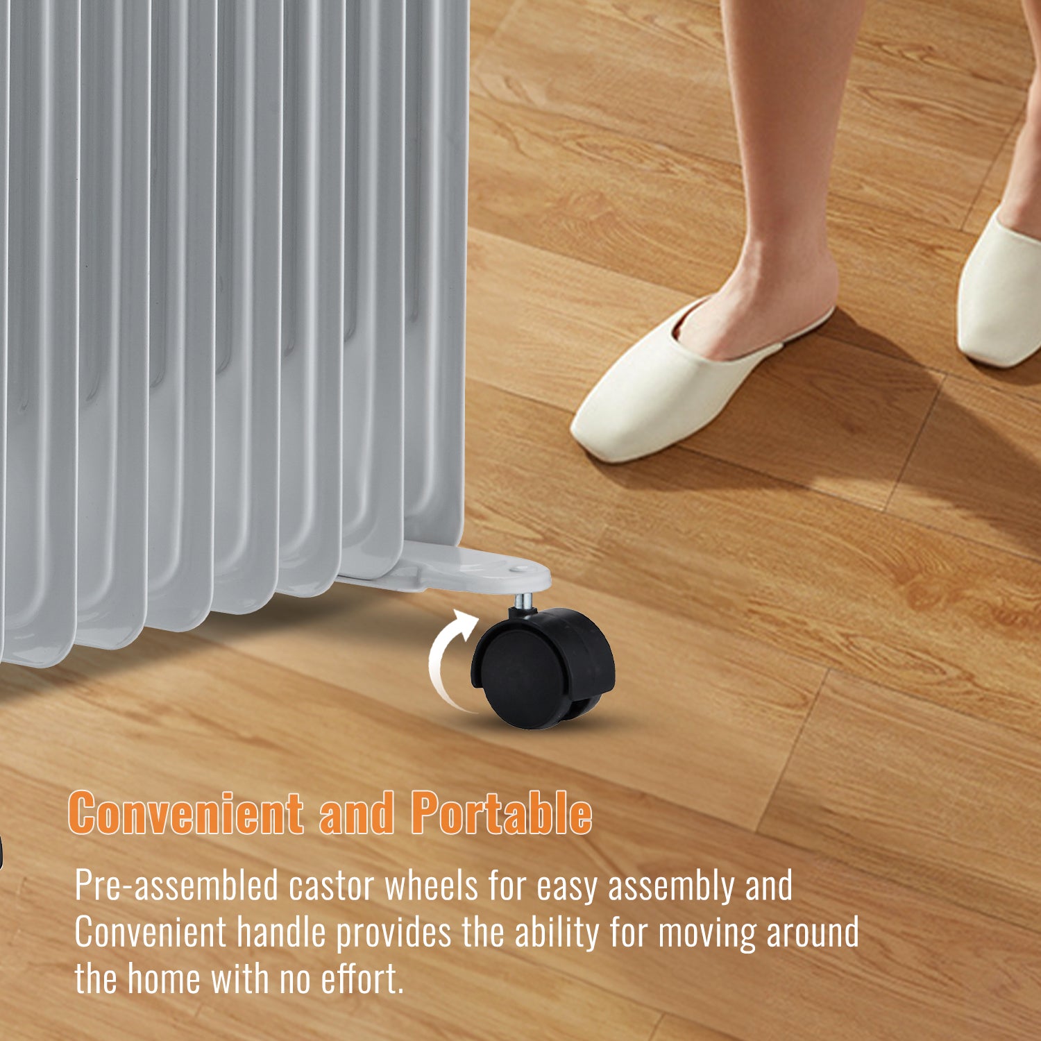 Oil Filled Radiator 2500W, Portable 11 Fin Electric Heater, 3 Power Settings, Adjustable Temperature and Thermostat, Thermal Safety Cut off & 24 Hour Timer