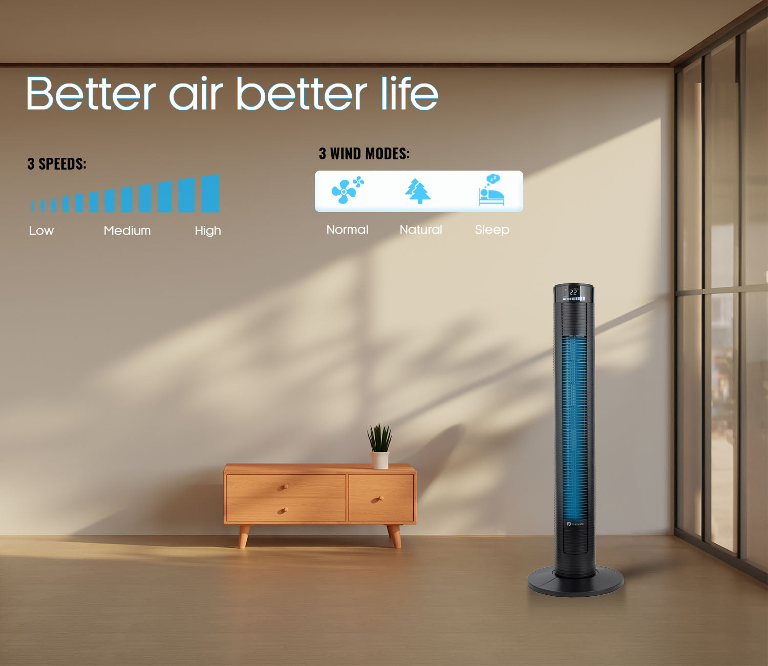 - 3 Speed Settings: Choose from Low, Medium, and High speeds to match your cooling needs.