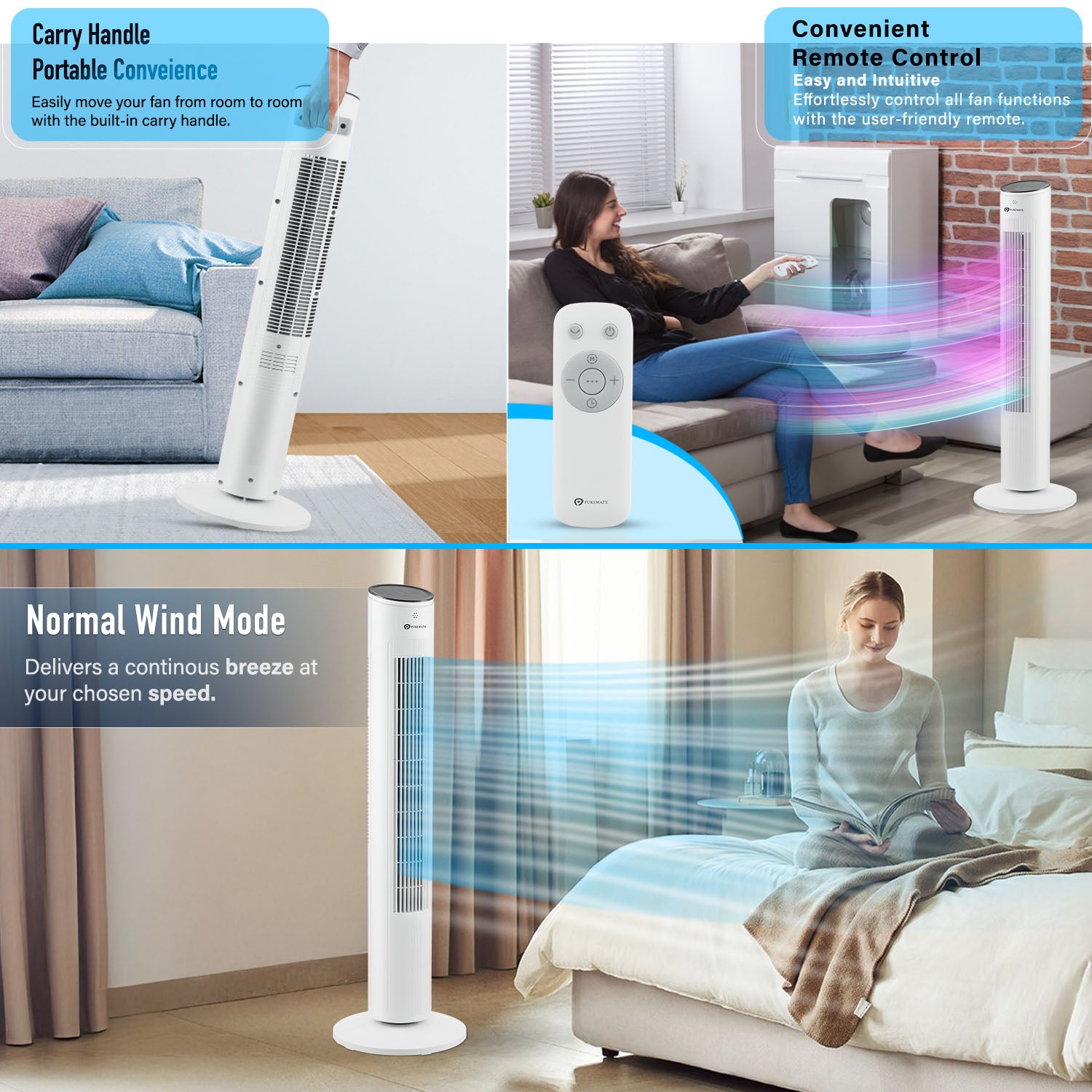 PureMate 43-Inch Oscillating Tower Fan – Sleek, Powerful & Whisper-Quiet Cooling