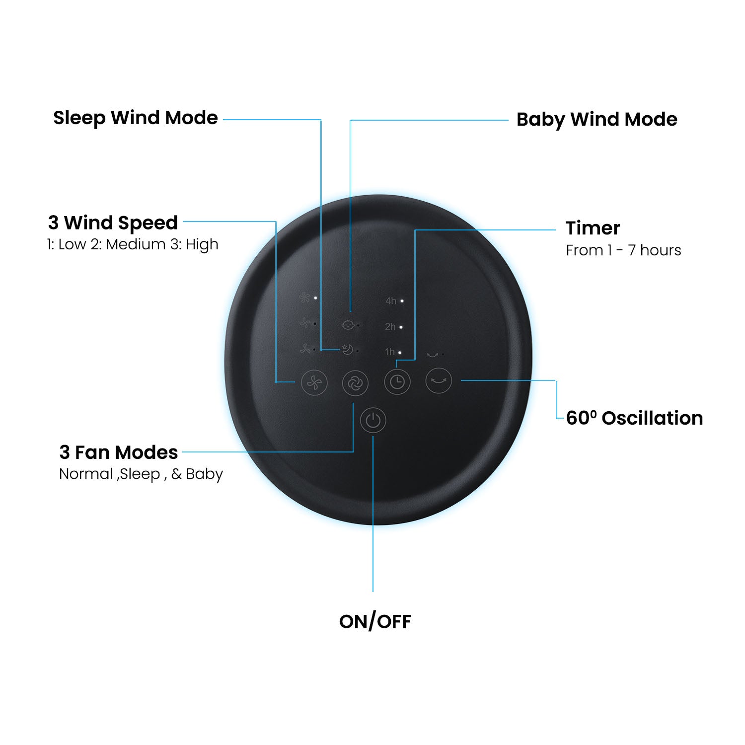 ✅ Sleep Wind Mode – Gradually reduces the speed to low over 30 minutes for a comfortable night’s rest.