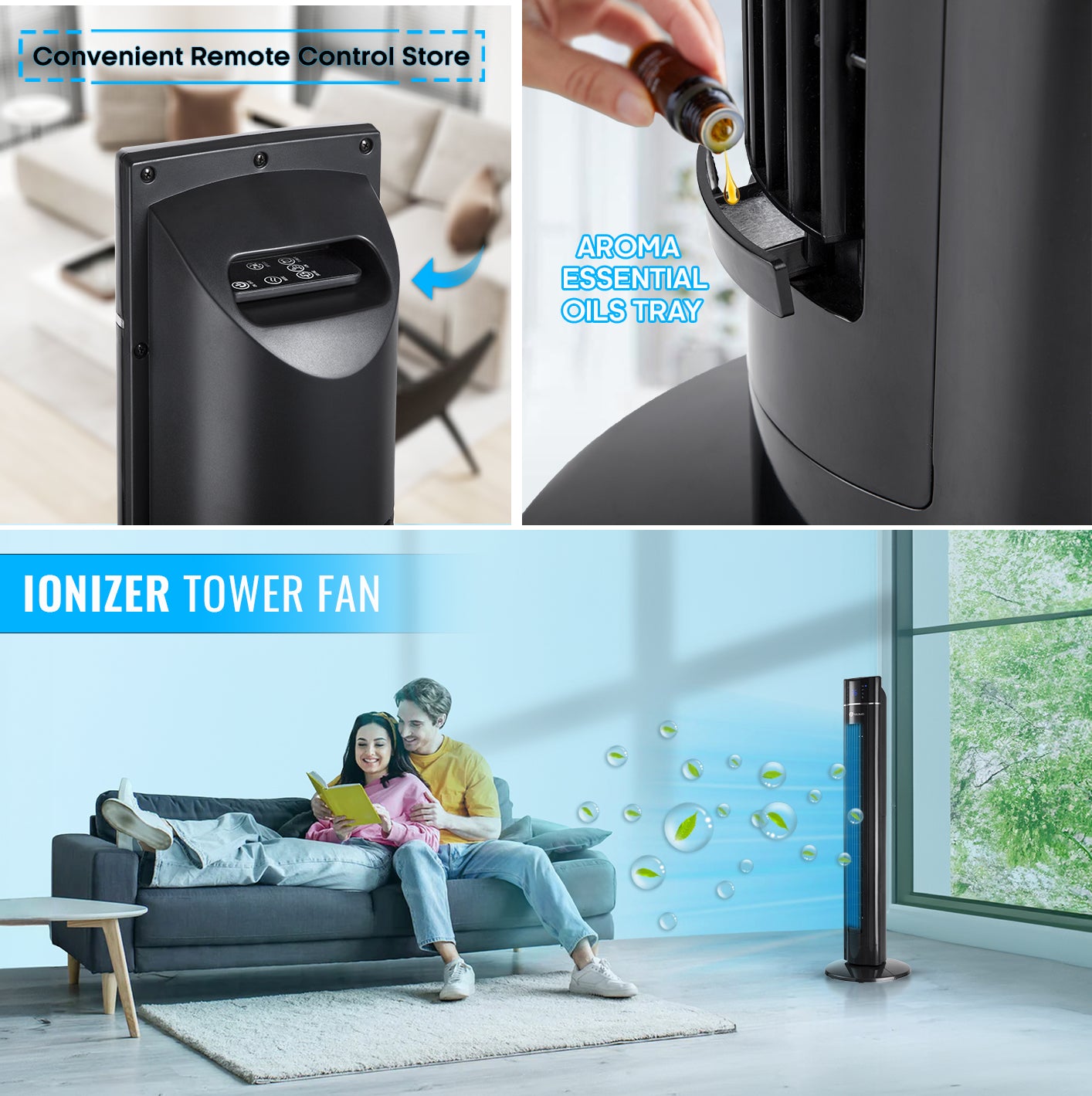 43" Oscillating Tower Fan with air Purifier and Aroma Function